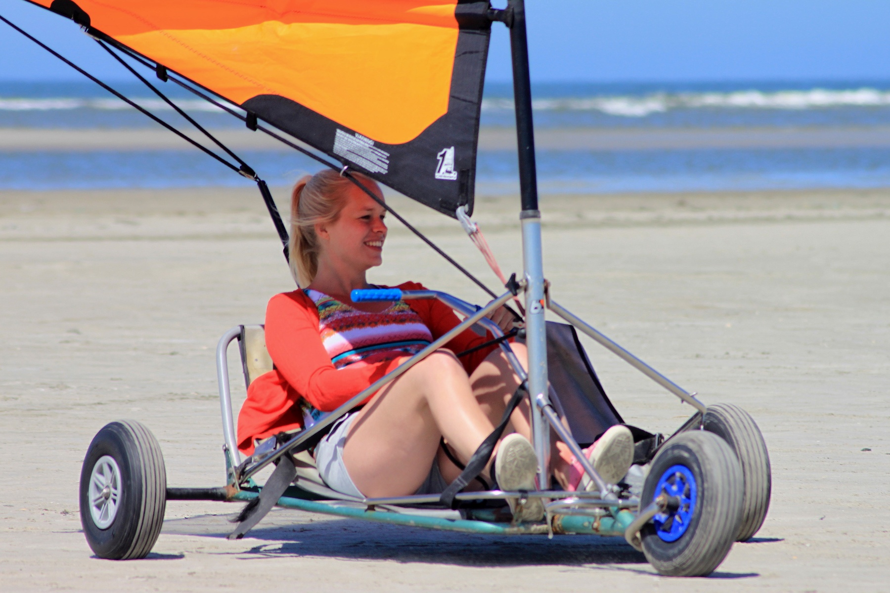 Een blokart is een ingenieuze strandzeilwagen, zo gemaakt, dat je het strandzeilen zonder specifieke ervaring kunt leren. Voor je het weet ga je met een verbluffende snelheid over de zandvlakte en stuif je vlak langs de branding. Op het hardste gedeelte van het strand is de weerstand het laagst en de snelheid dus het hoogst!